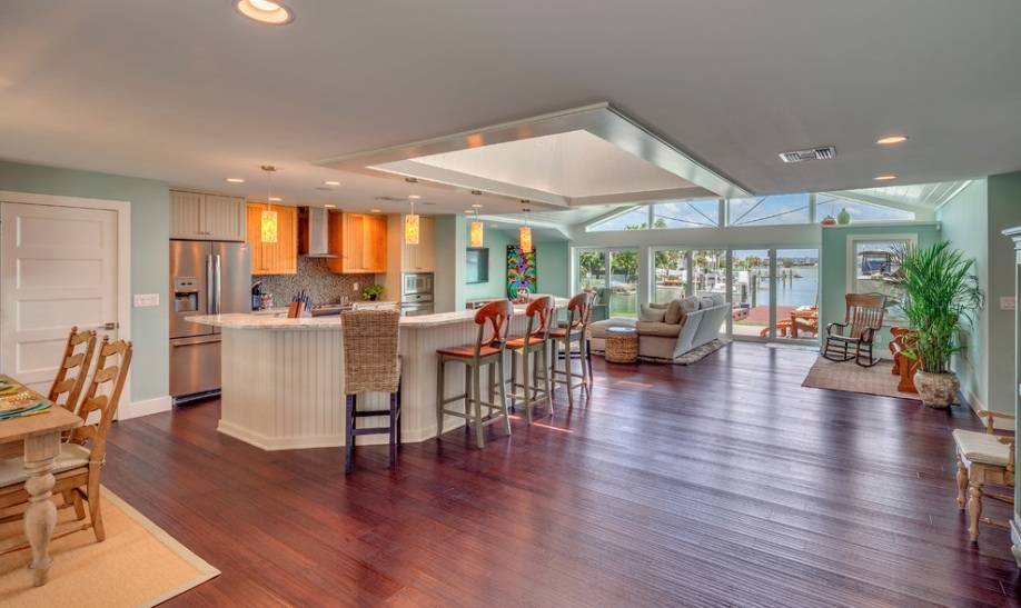 Реконструкция дома для пенсионеров сможет потребовать разработки более открытой планировки такой, как, например, убранство кухонной зоны и гостиной от архитектурной студии HFD Architects.
