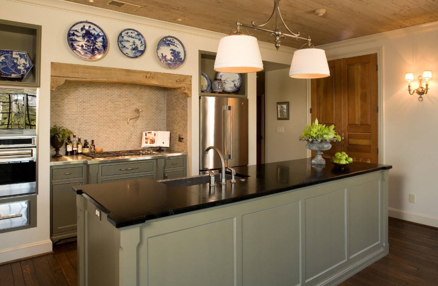 Устройство в помещении островной кухонной зоны очень модное и необычное решение, которое смотрится невероятно красиво. Мебель, расставленная в форме острова, дает доступ к себе с любой стороны, это очень удобно при готовке блюд.