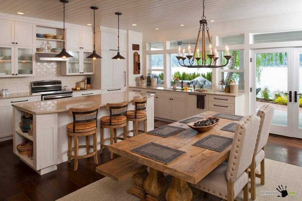 Выделенная обеденная зона – это тоже одна из актуальнейших тенденций этого года. Таким образом в кухонное помещение входит символическая столовая, в которой удобно принимать гостей, ужинать всей семьей или устраивать дружеские чаепития.