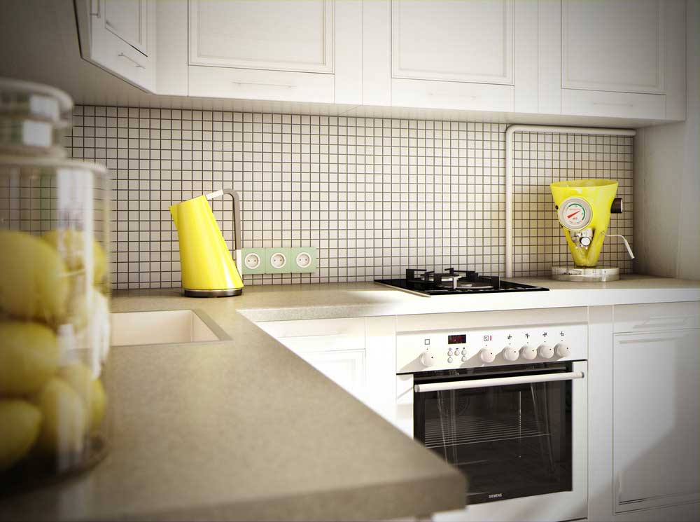 Учитывая небольшой размер кухни, бытовую технику встройте в мебель или используйте для этого ниши. Поскольку холодильник является самым габаритным прибором, найдите для него место в другом помещении, например, в прихожей или на балконе.