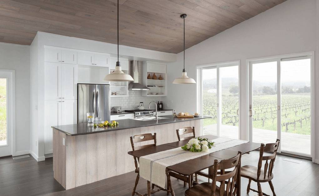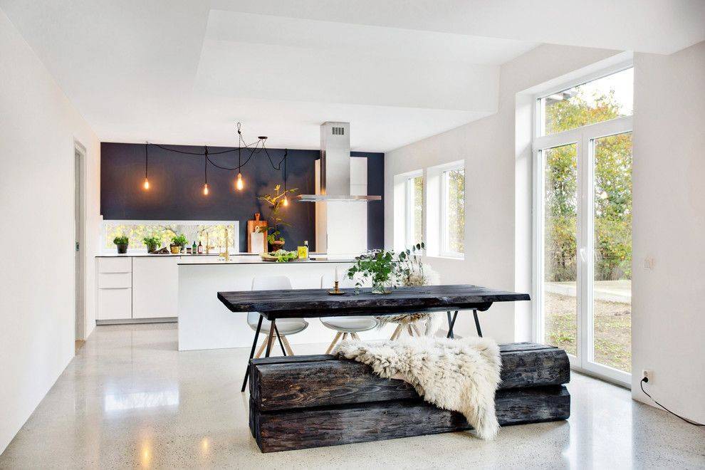 Кроме лофта в кухнях-студиях будет хорошо смотреться оформление в скандинавском стиле, он очень похож со стилем лофт, но его главное отличие — это использование максимально светлых оттенков и натуральных материалов.