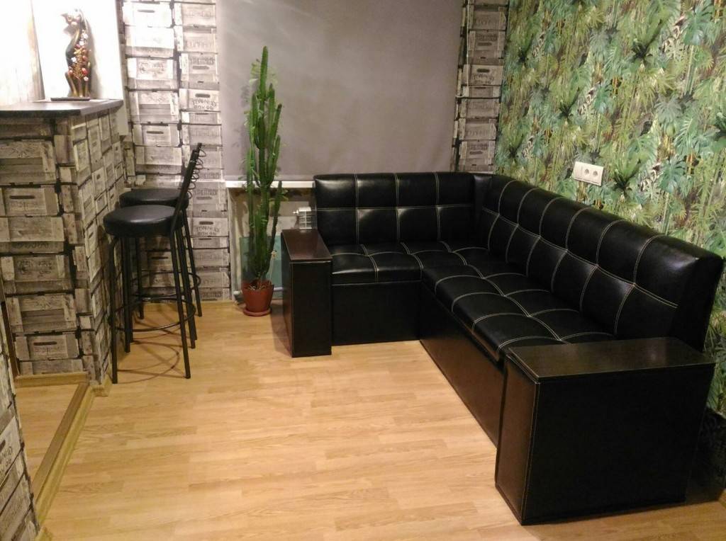 Стилевое направление модерн допускает наличие разных материалов для мебели – натуральные, синтетические, комбинированные. Обустройство кухни близкое к минимализму с акцентами. Элементы роскоши – нормально для модерна. Поэтому столешница гарнитура и барной стойки из натурального камня или массива придется к месту. Цветовая палитра обширная – теплые оттенки гармонично сочетаются с холодными, блеклые с яркими.