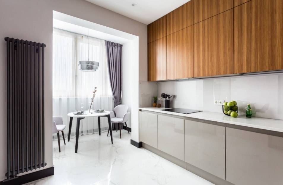 Также стоит отметить, что за счёт присоединения балкона не только увеличится тепло и звукоизоляция кухни, но и заметно улучшится дневное освещение, ведь солнечный свет получит гораздо больший доступ во все уголки комнаты.
