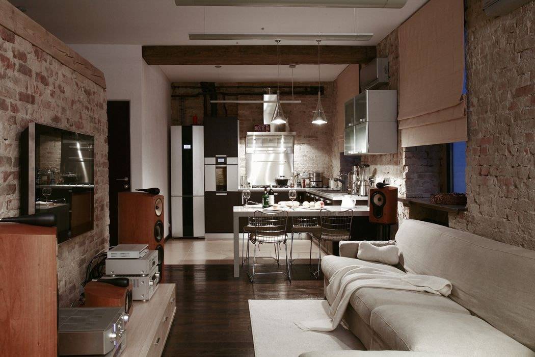 - изолированная кухня задерживает запахи еды, в совмещенной же, напротив ‑ пропахнуть могут шторы, диван и обивка кресел;
