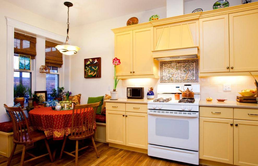Светло-желтые, песочные, охристые оттенки невольно напоминают нам о сгоревшей траве под жарким южным солнцем. На кухне Прованса такие оттенки будут актуальны как цветовые решения кухонных фасадов. На светлом фоне такая мебель будет выглядеть невероятно. Подобные решения также подходят для небольших кухонных интерьеров .