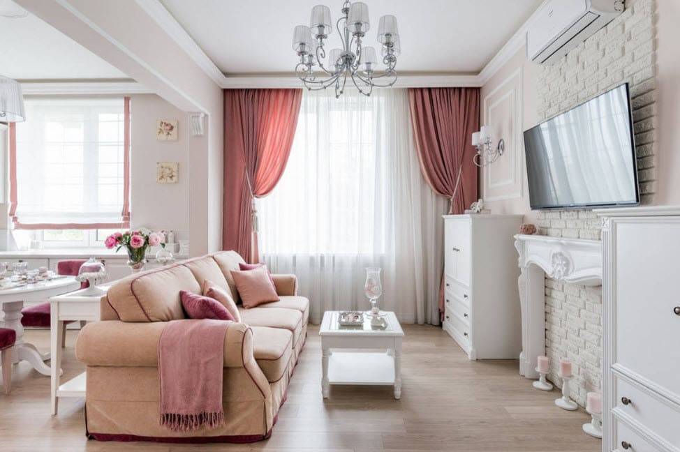 Идеальные исходные данные комнаты — простор, высокие потолки, правильная форма. Небольшие залы тоже оформляют в классическом стиле, правда работы будет гораздо больше.