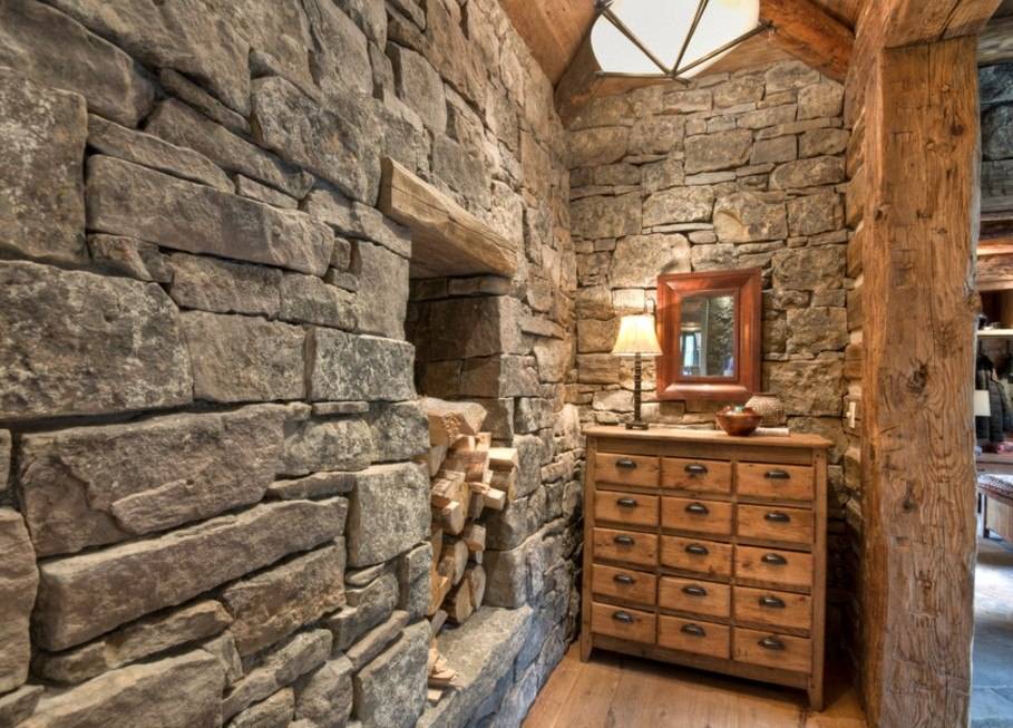 Еще один интересный вариант — устроить в стене нишу и вмонтировать систему хранения прямо туда. Главное, чтобы это была не несущая опора, а внутренняя перегородка, разрушение которой не причинит вреда дому.