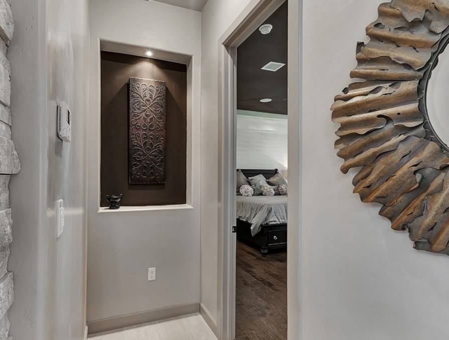 Один из классических приёмов для коридора — разместить на стенах картинную галерею. Но можно выбрать и более нестандартные способы декорирования. О них позже.