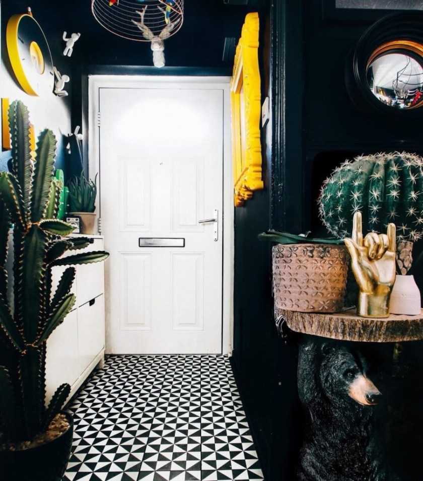 Яркие и необычные аксессуары тоже отвлекут внимание от формы и размера прихожей. Не бойтесь их использовать!. Фото: Instagram @bilbao.design
