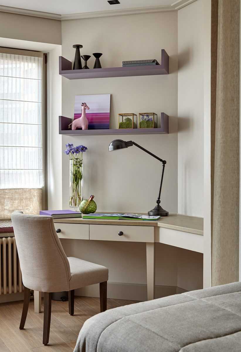 Рабочий кабинет в спальне имеет смысл разместить в случае, если площадь дома или квартиры весьма ограничена. Наполнение помещения трансформируемой мебелью позволит эффективно использовать пространство не только для ночного отдыха, но и для дневной работы.