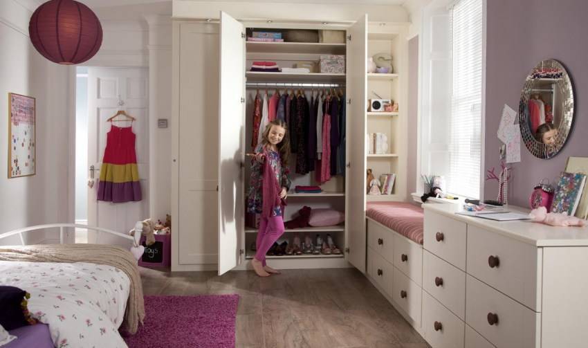 Девочкам не так важно большое количество свободного места, им необходимо побольше ящиков и отделов, в которых можно хранить личные вещи и предметы гардероба. Для них можно использовать этнический стиль, совмещенный с минимализмом