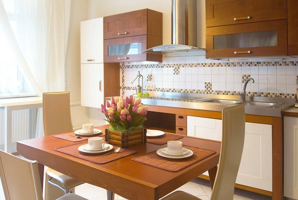 Полноценная обеденная зона для маленькой кухни часто становится огромной роскошью. В этом случае актуально задать вопрос, как сэкономить пространство и вместить стол, либо какие возможны еще варианты.