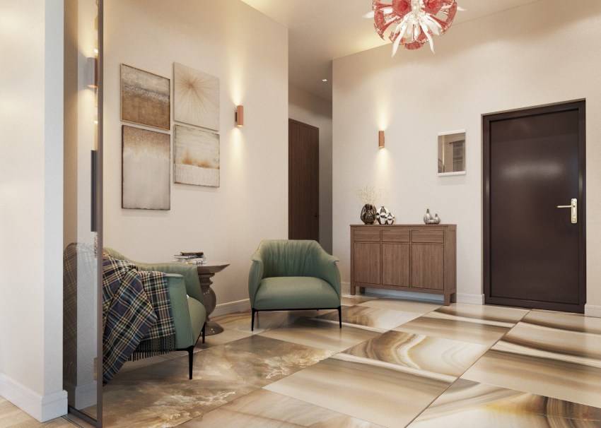 Керамическая плитка в интерьере небольшой прихожей