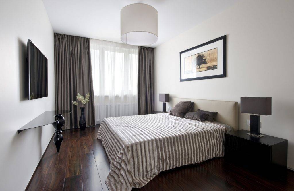 Вам необходим телевизор? Для маленькой спальни неприемлем традиционный вариант размещения данного предмета на тумбочке. Прекрасным решением станет современное устройство плоского типа, которое крепится на стене.