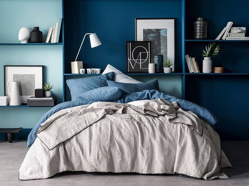 Синие тона – их предпочитают активные люди. Синий цвет восстанавливает силы и придает бодрости. Использование акцентов – если применять только белый цвет, то ваша спальня станет похожа на больничную палату. Поэтому профессионалы советуют сочетание цветов, в идеале три оттенка. Это элементы декора, текстиль и мебель, которые могут быть по цвету отличны от стен комнаты.