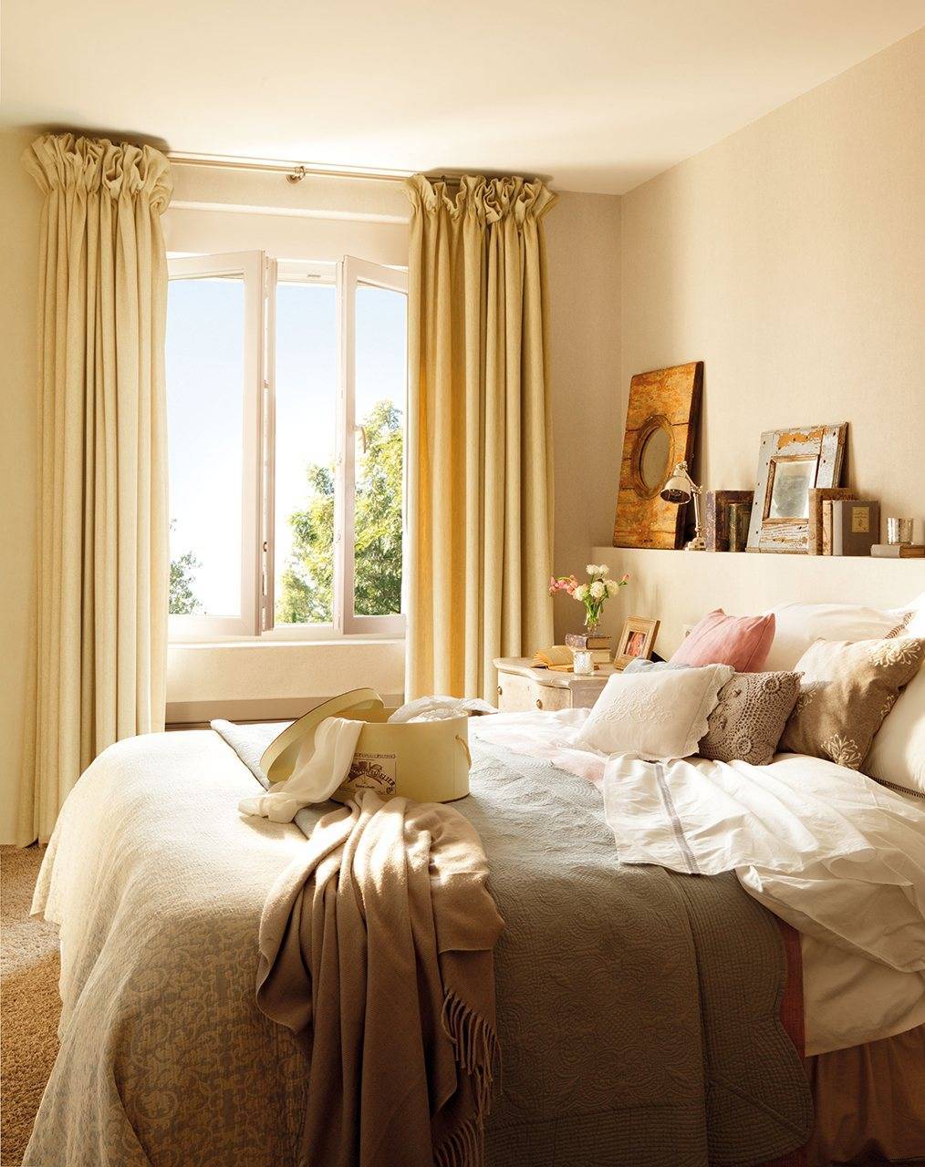 Поэтому по мере возможности стоит отказаться от тюля или даже от штор. В качестве компромисса используй занавески нейтрального цвета. Если в спальне есть выход на балкон, то имеет смысл поставить большие окна в пол.