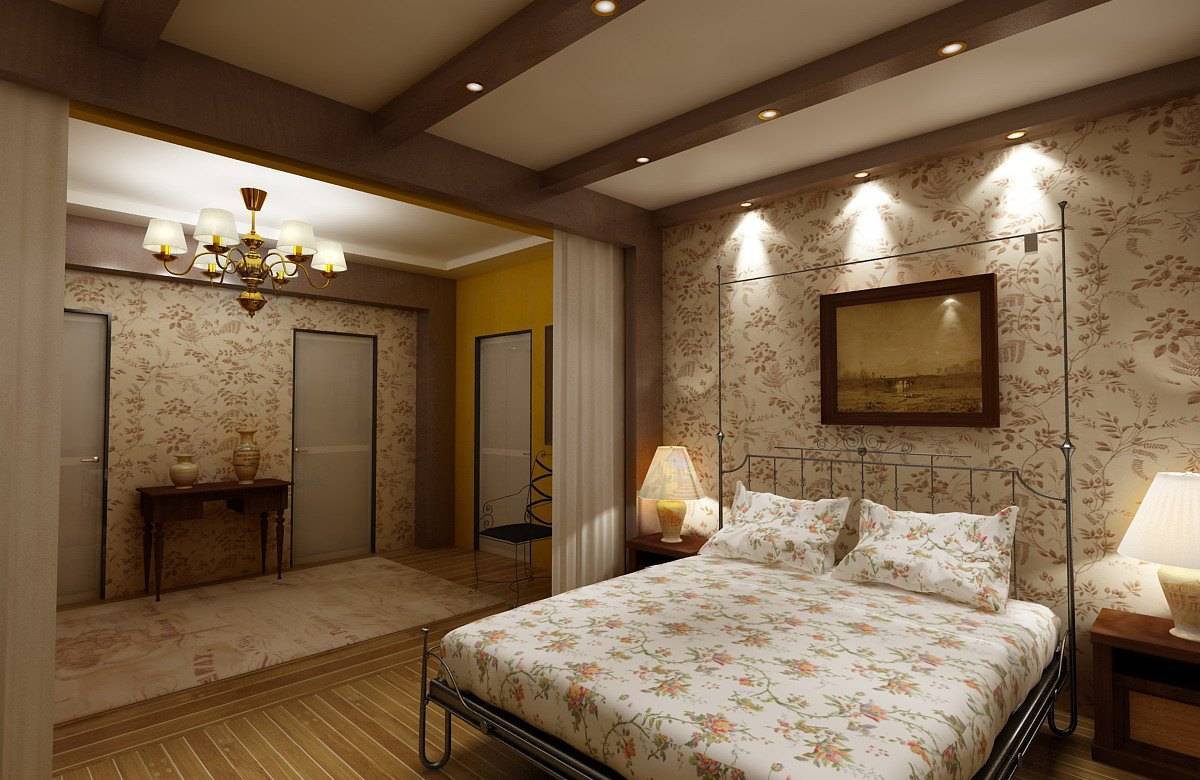 В спальнях популярно устанавливать светильники, позволяющие менять интенсивность освещения, создавая полумрак.