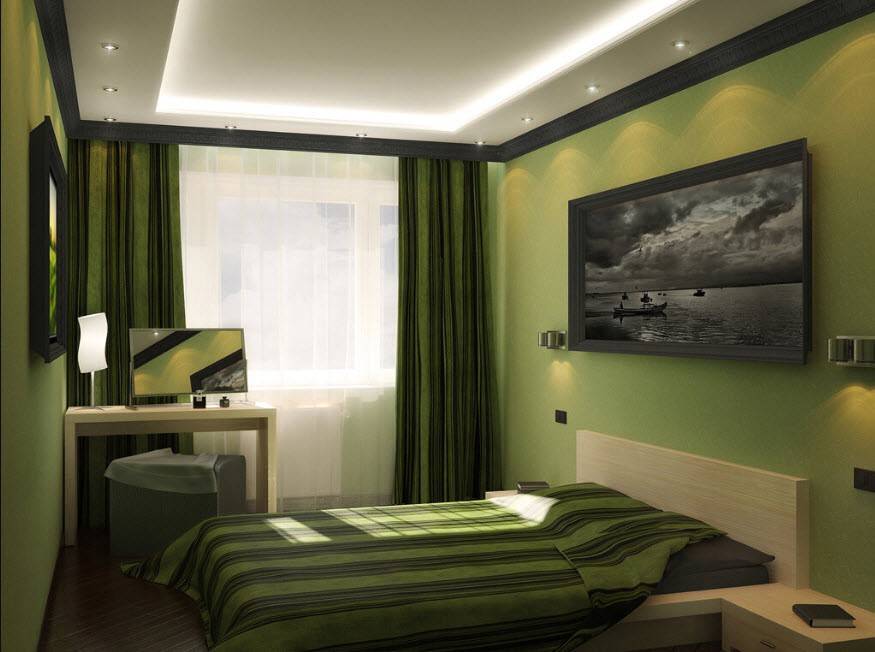 Зеленый цвет и его оттенки подарят чувство свежести, успокоят нервную систему и дадут глазам отдохнуть. Так как цвет относится к природной палитре, то он прекрасно сочетается с коричневым, желтым и серым цветами.