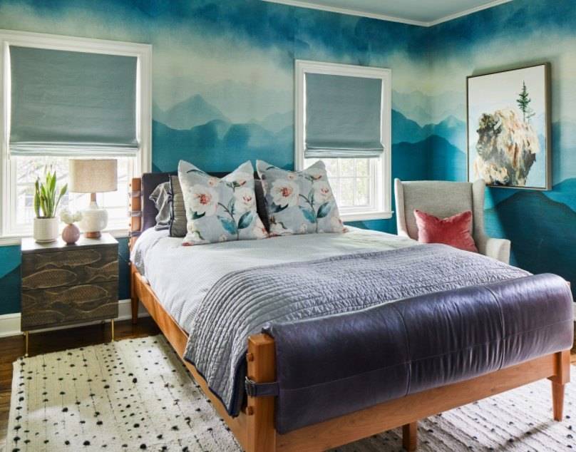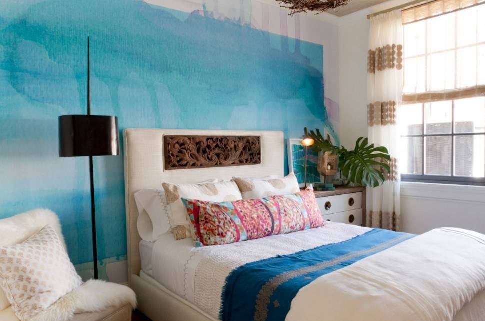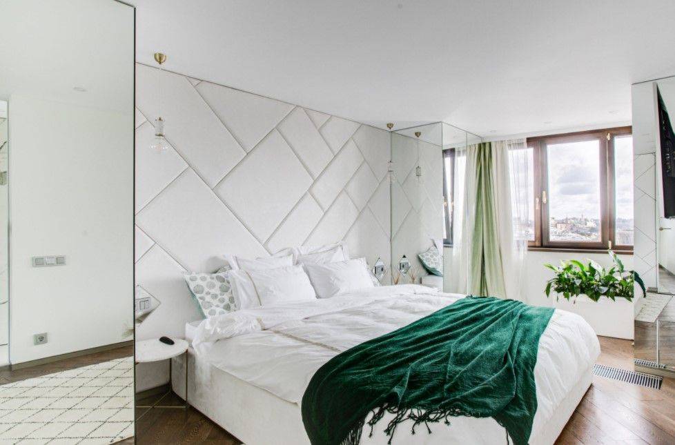 Выбор акцента. Модный прием расширения пространства – особое оформление одной из стен, обычно в изголовье кровати.