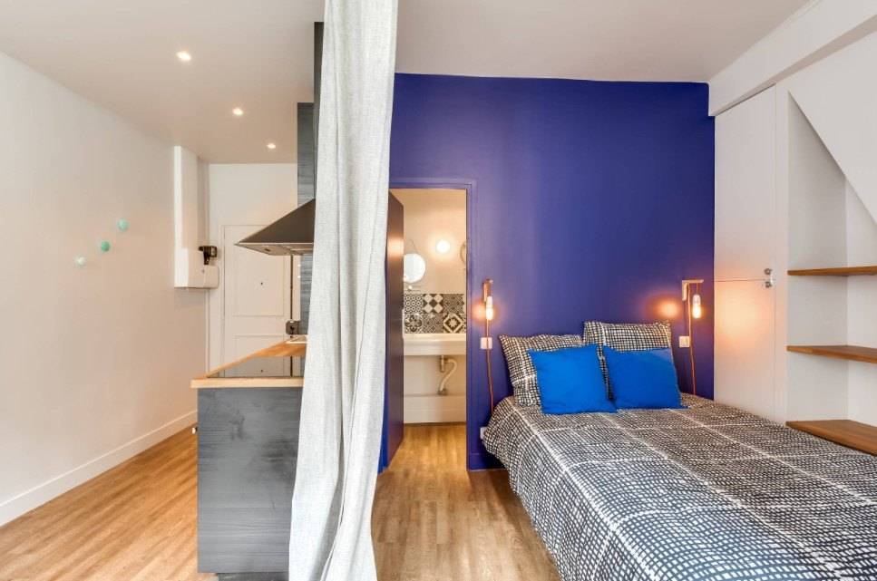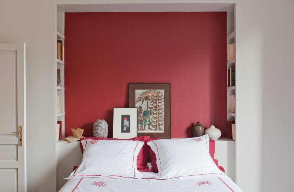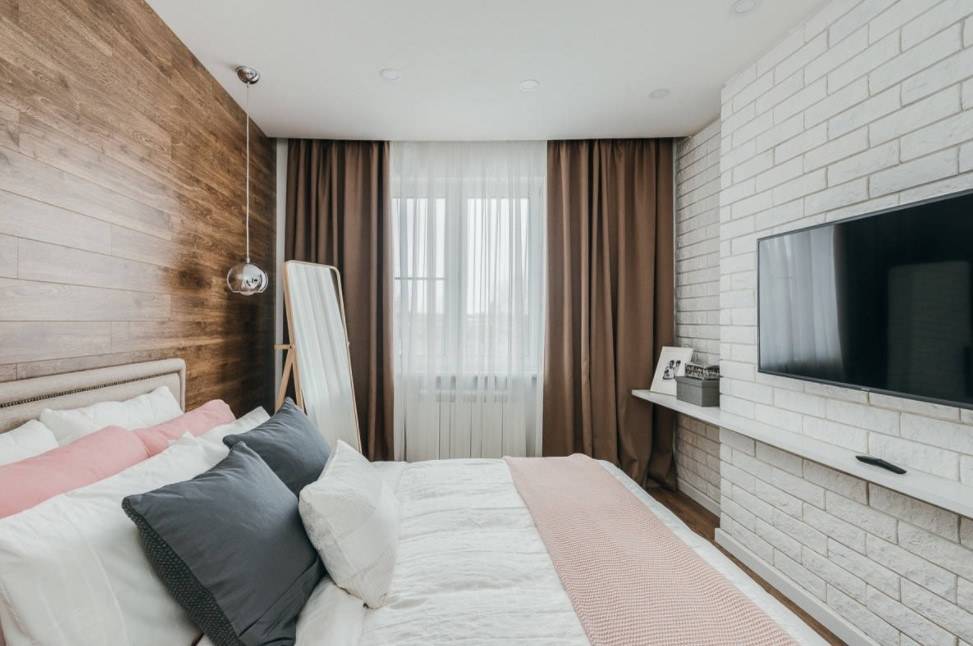 акцентная стена отвлекает внимание от дефицита площади;