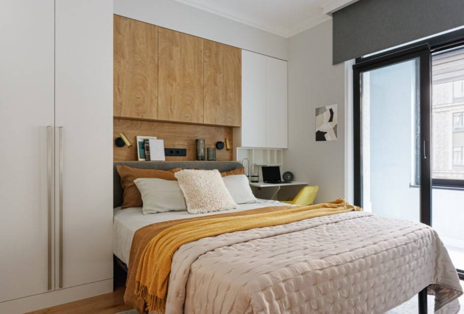 Обычно в небольшой комнате для сна также нужно найти место для систем хранения. Это может быть: