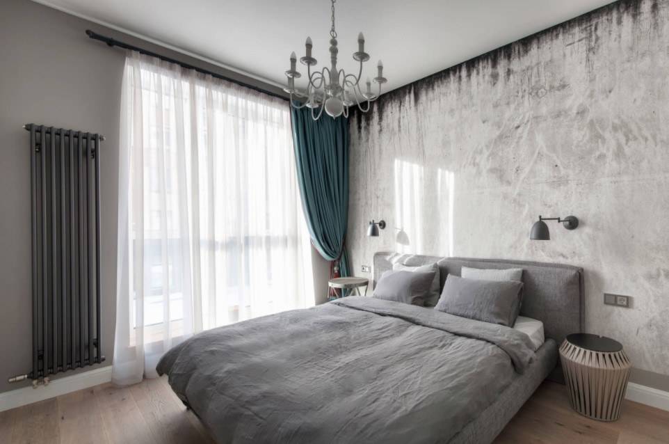 Цвет текстиля необязательно должен совпадать с цветом стен или быть одинаковым, как у кровати, так и на окнах или обивки мебели. Достаточно объединить его стилистически, одним декором, например полоской или цветовыми нюансами. Так, например, если у вас небесно-голубые стены, то шторы могут быть серо-бежевыми, а покрывало на кровати насыщенно-синим (индиго). Еще выигрышно смотрится сочетание серых стен с фактурой бетона с бархатным покрывалом цвета мокрого асфальта, а ярким акцентом послужат подушечки золотисто-салатового цвета.