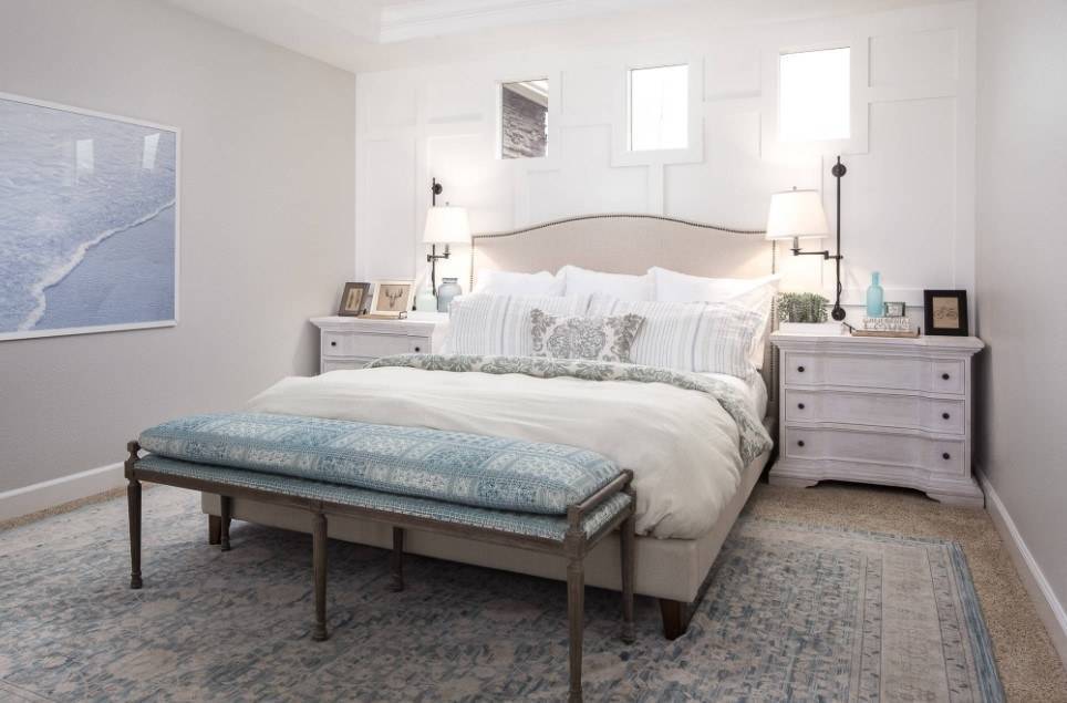 Поскольку без кровати спальню представить сложно, важно правильно выбрать мебель