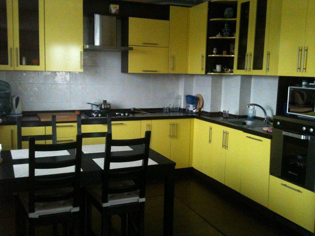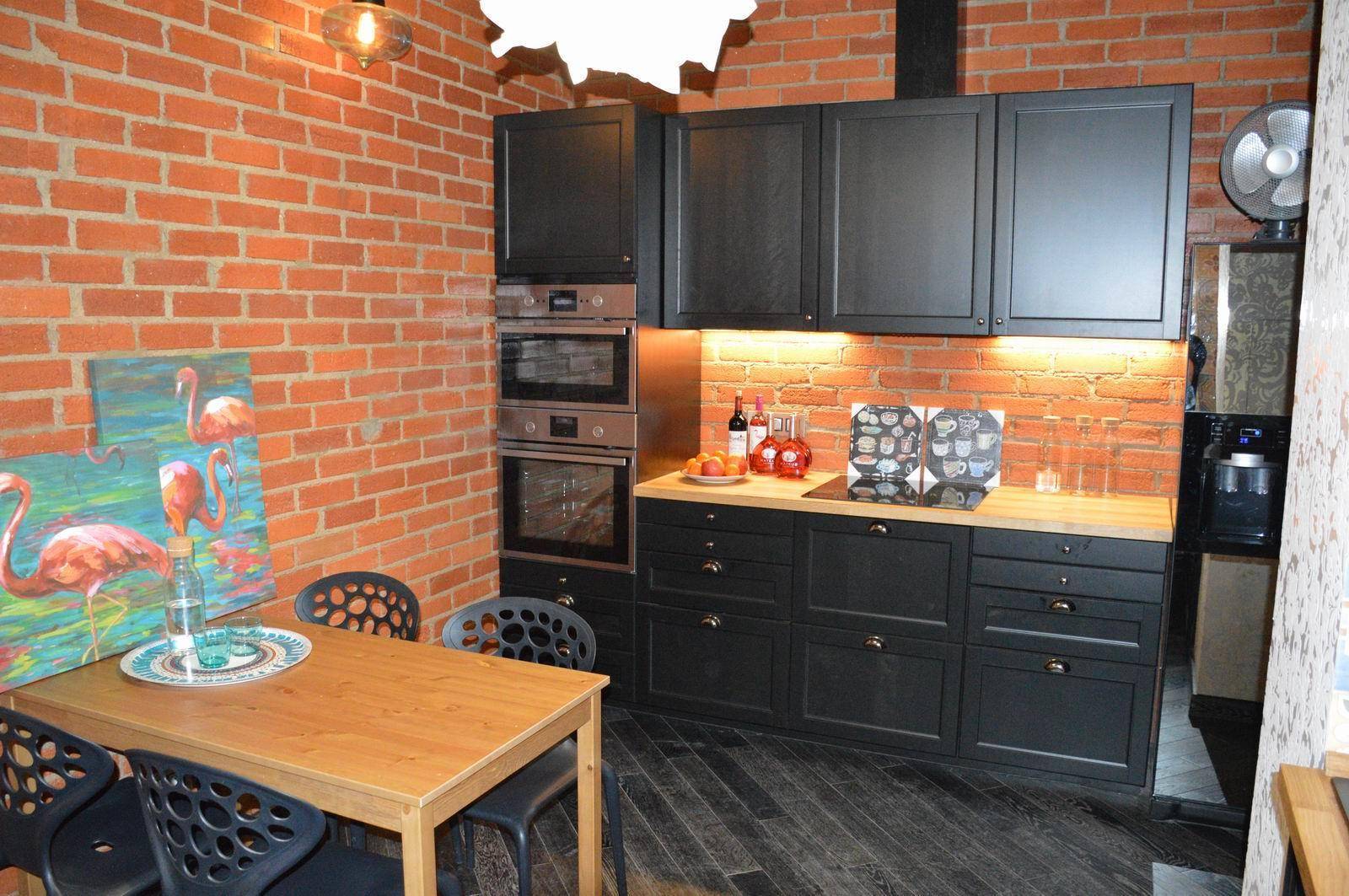 Чуть сложнее с мебелью в темных тонах. Чтобы кухня не казалась мрачной, делают цветовое деление в дизайне интерьера. Для акцентирования внимания на темных фасадах при отделке используют светлую облицовку фартука и стены, плитку для напольного покрытия также выбирают светлого цвета.