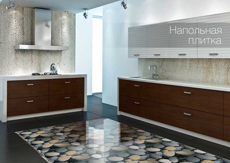 Для напольного покрытия кухни подходит только крепкая плитка, так как на неё будет приходится большой вес