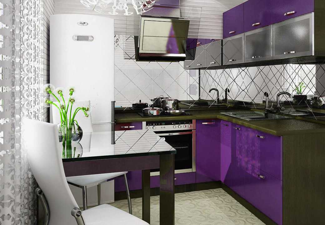 На самом же деле фиолетовая гамма цветов прекрасно вписывается во многие популярные стили оформления интерьера кухни в хрущевке.