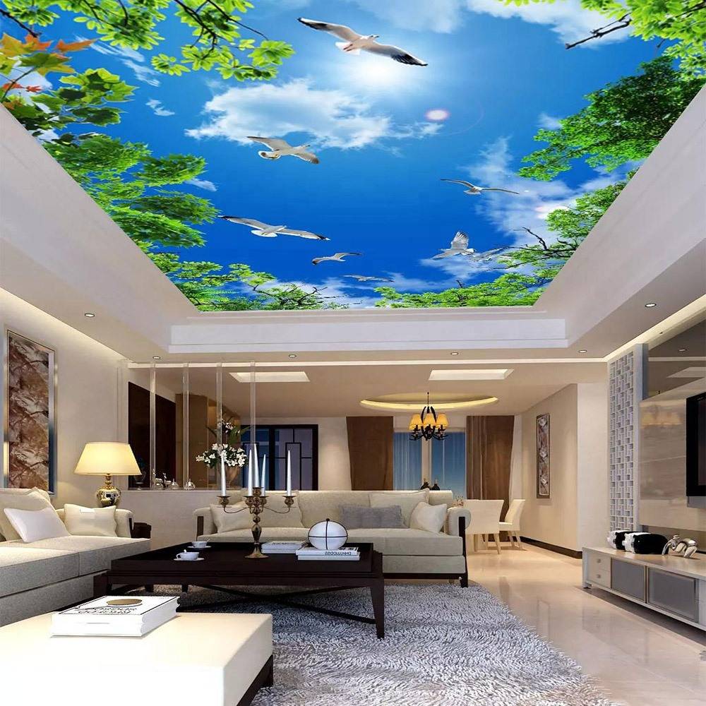 Особенно эффектно выглядит рисунок, словно у вас стеклянная крыша и видны верхушки деревьев