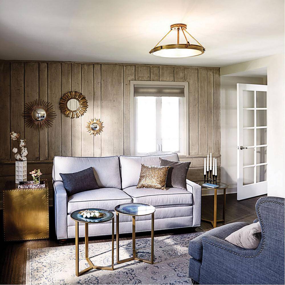 Грамотный подход к оформлению комнаты позволит избавиться от визуальных границ и добавить гостиной простора. Для этого достаточно правильно сочетать осветительные приборы с выбранной цветовой палитрой.