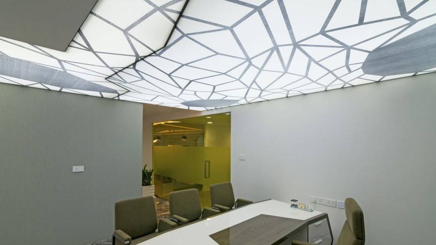 Подвесные системы внешне практически неотличимы от белых матовых натяжных. Поэтому их часто комбинируют с тканевыми или ПВХ-полотнами, чтобы создать интересный дизайн.