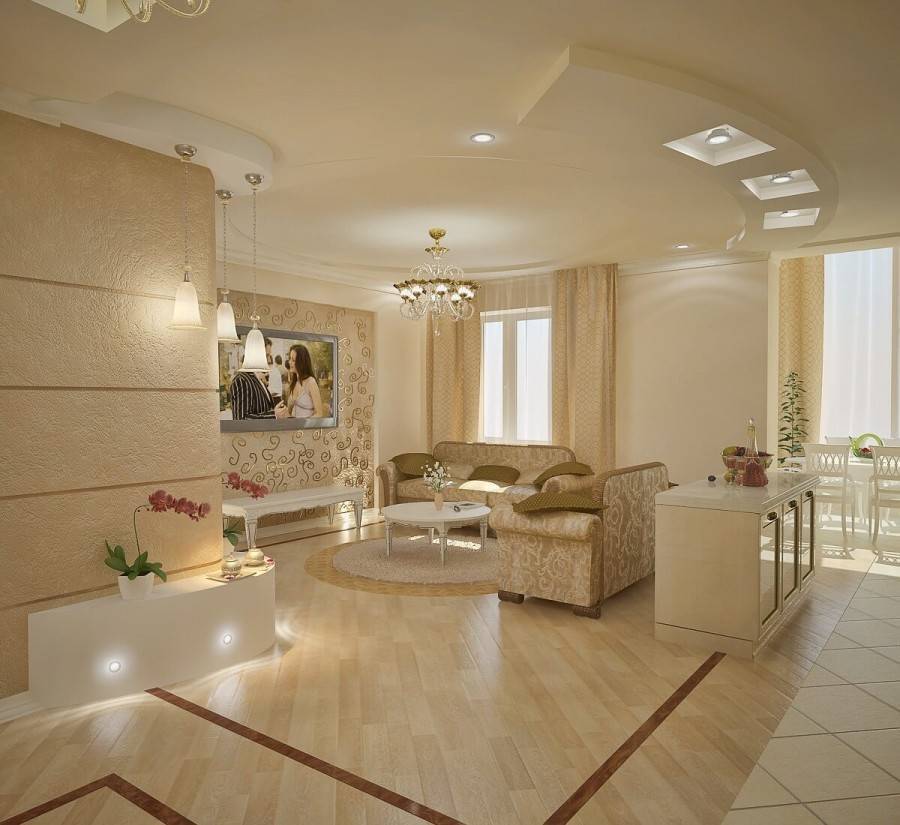 Натяжные потолки в зале из ПВХ плёнки (фото)
