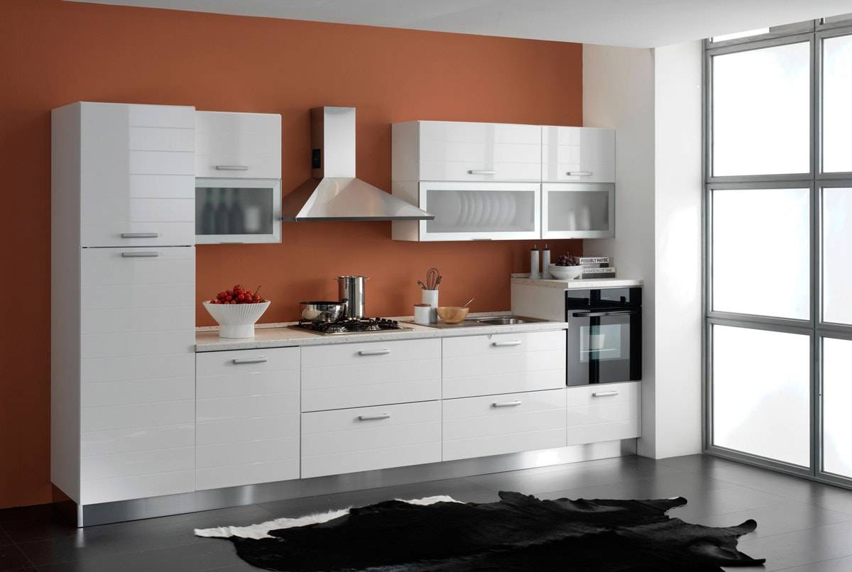 Самая универсальная, а иногда и единственно возможная схема расположения кухонных шкафов. Если семья небольшая и вы нечасто готовите, то даже длины стены в 3 метра может быть достаточно для того, чтобы расположить вдоль нее всю необходимую мебель и технику.