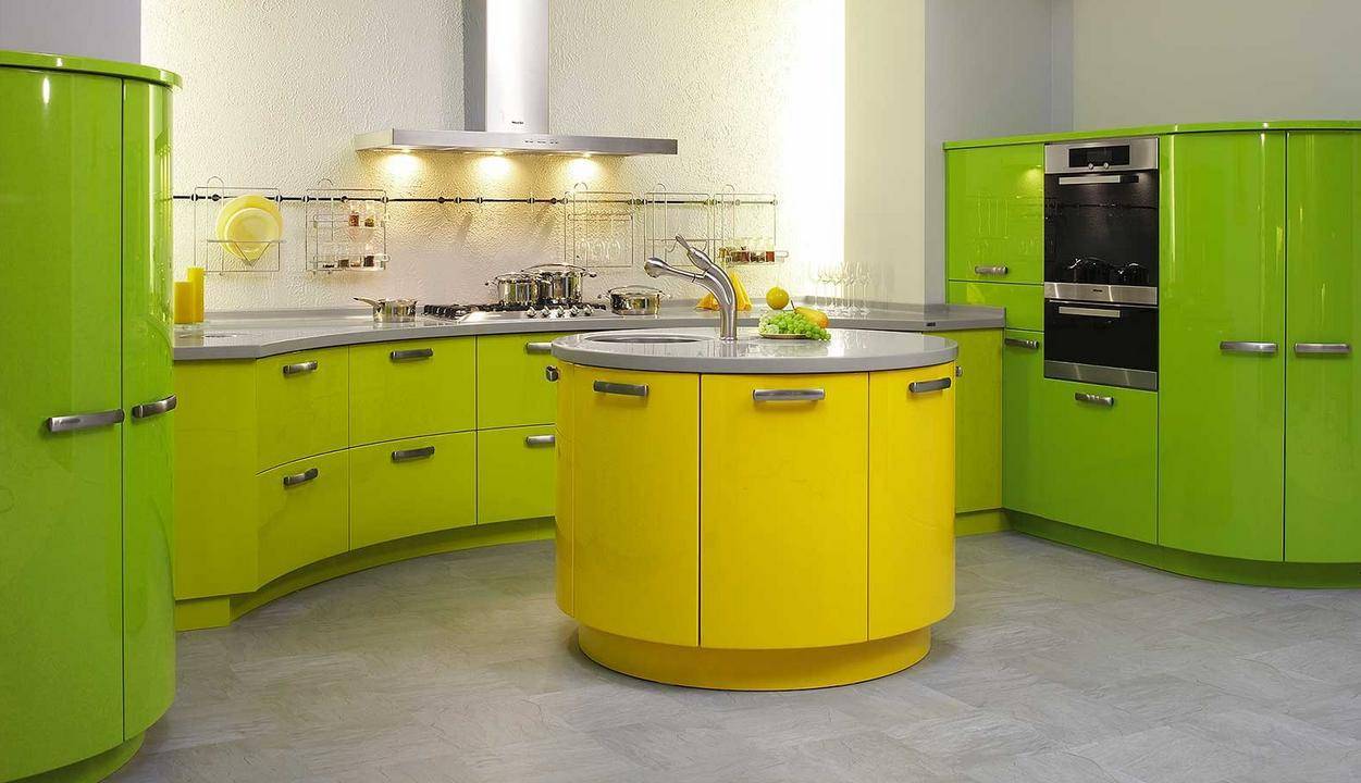 Полуовальная кухня — кухня представляет собой некий полуостров. Происходит деление пространства кухни на две зоны — рабочую и гостиную. Зачастую в роли разделителя выступают барные стойки, плиты или шкафы с мойкой.