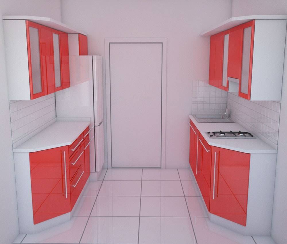 Двухрядная кухня — гарнитур на кухне располагается на двух противоположных сторонах кухни.
