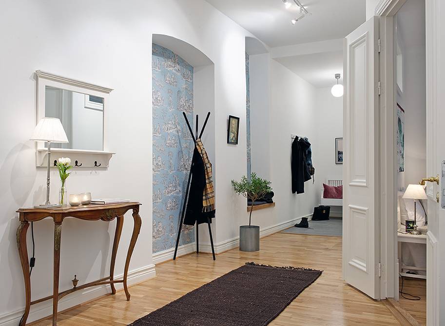 Чтобы понять, насколько важно правильно выполнить его отделку, следует определиться с назначением этой части квартиры. Если по завершении модернизации других комнат на прихожую и коридор не осталось средств, не оставляйте это пространство без обновления. Выполните облицовку недорогими материалами интересной расцветки или с богатой фактурой, имитирующей декоративную штукатурку, дорогой текстиль или природные материалы: