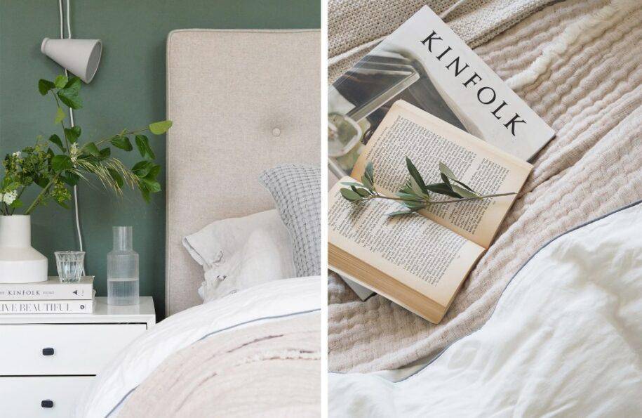 — Не забывай о постельном белье, ведь это такой же важный элемент интерьера спальни. Выбирай натуральные дышащие материалы: сатин, бязь и другие хлопковые ткани, бамбук, лен, шелк.