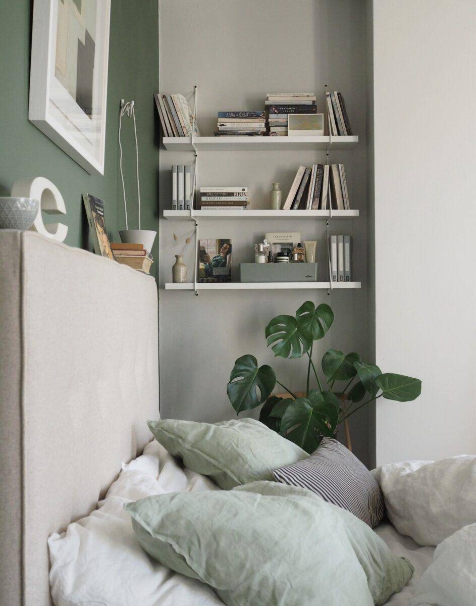 В спокойной атмосфере небольшой спальни уместны живые цветы, книги и картины в качестве декораций комнаты.