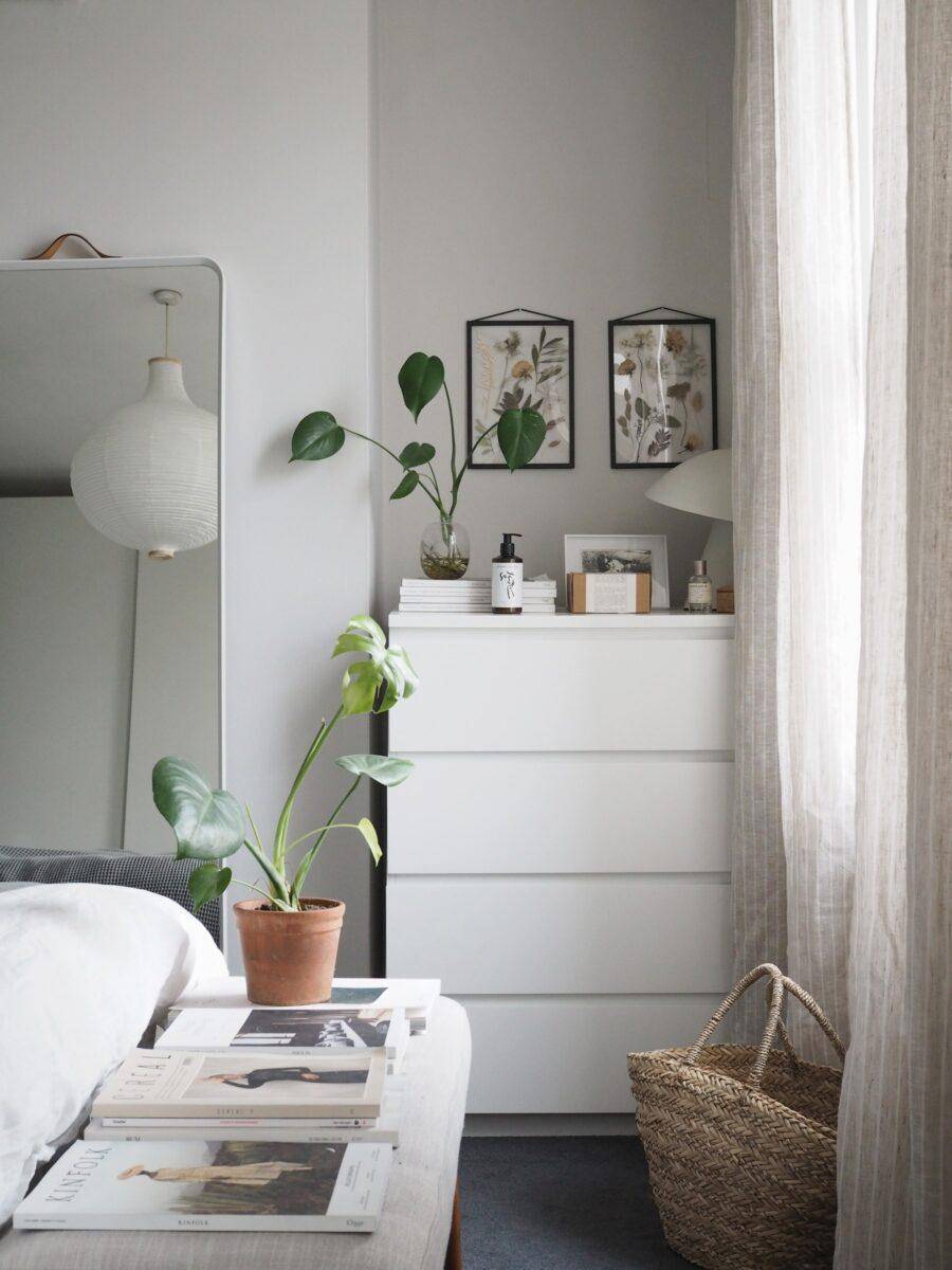 Малогабаритное помещение в скандинавском стиле выглядит просторным, светлым и уютным. В этом решении приветствуются нейтральная пастельная отделка и добротная деревянная мебель. Контраст создадут яркие акценты вроде постельного белья из натурального текстиля или картина, изображающая живописный горный пейзаж. В качестве декора можно использовать живые растения.