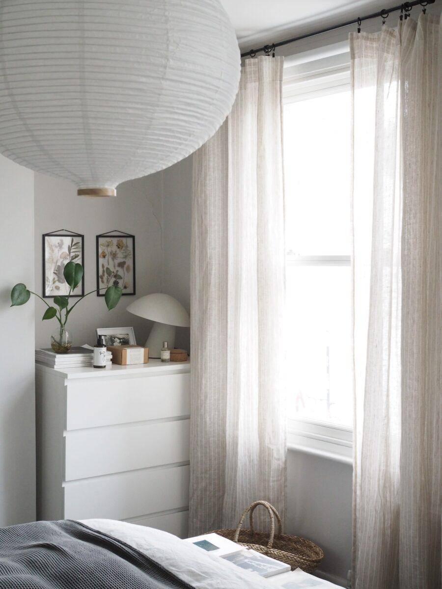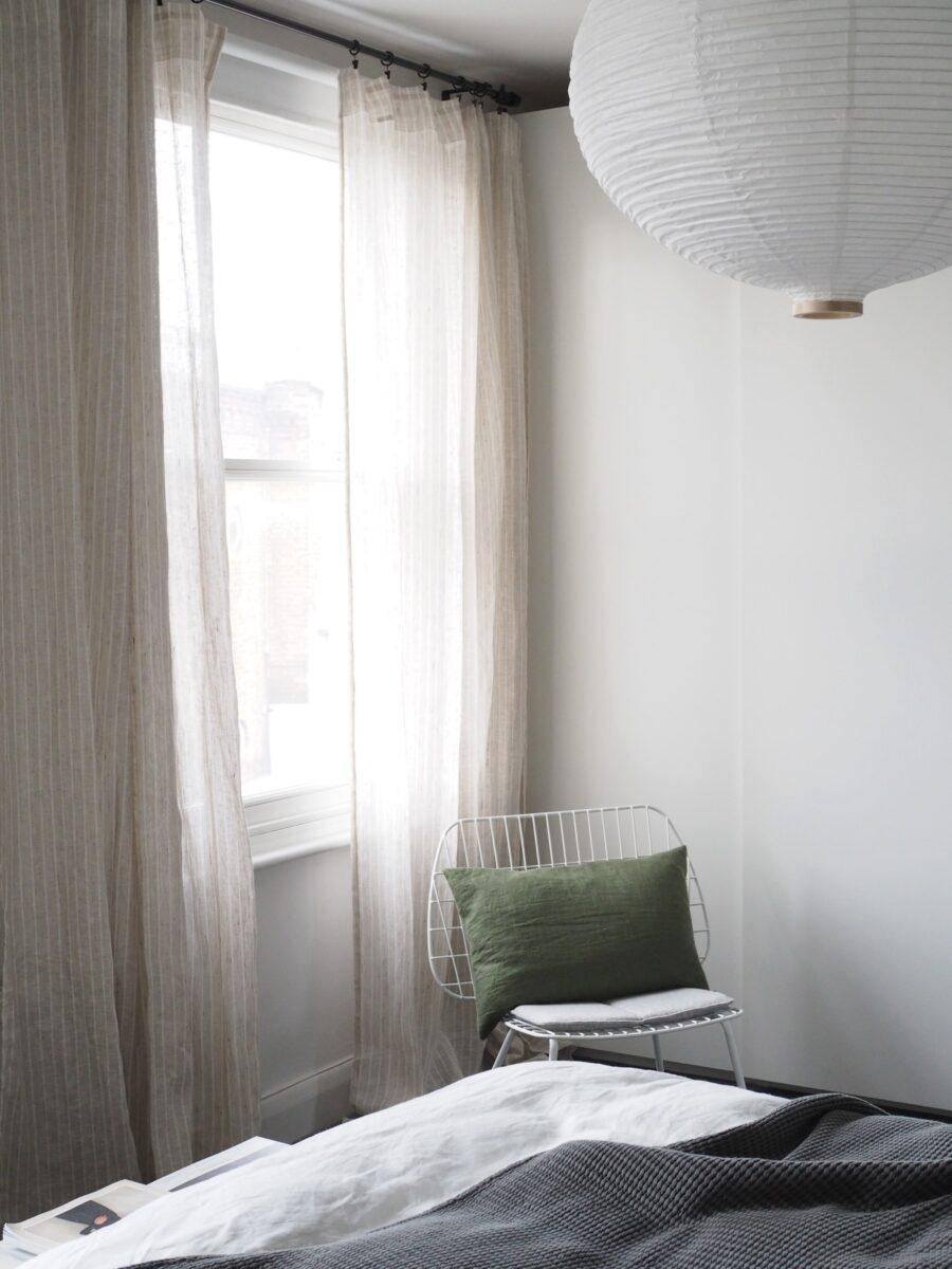 - Его важнейшая составляющая — шторы. Даже в относительно темных комнатах без них не обойтись, если вам не хочется просыпаться с восходом солнца. Выбор дизайна занавесок зависит от выбранной стилистики. Современные варианты выглядят максимально просто, без ламбрекенов, завязок и бахромы. Главное в портьерах — плотная тяжелая ткань, которая не пропускает свет.