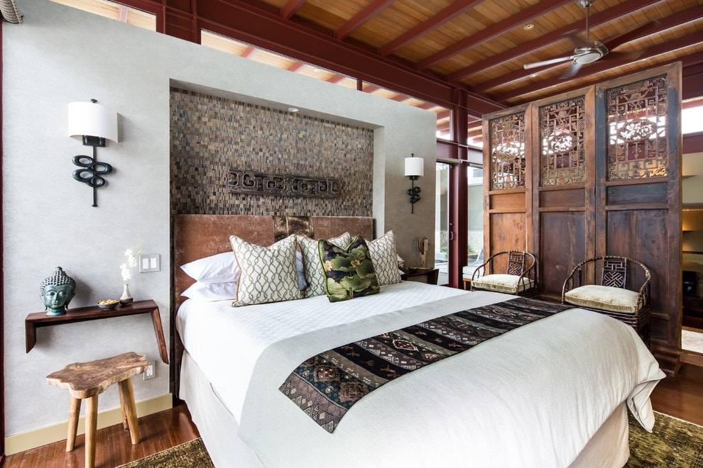 Если вы решите исполнить интерьер своей спальни в восточном стиле, то его колорит предполагает яркую цветовую гамму и активное сочетание геометрических форм круга и квадрата. Наиболее хорошо такой стиль подходит как раз для квадратных помещений. Если же форма спальни представляет собой вытянутый прямоуголник, — так называемый пенал или «вагончик», – то соединение скандинавских мотивов и стиля хай-тек будет наиболее разумным.