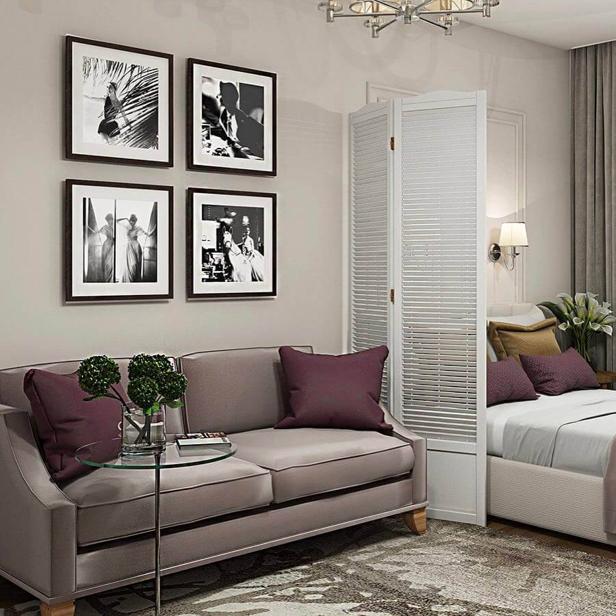 Совместить гостиную и спальню в пределах 15 кв. м сложнее, варианты дизайна с зонированием пространства можно посмотреть на фото.