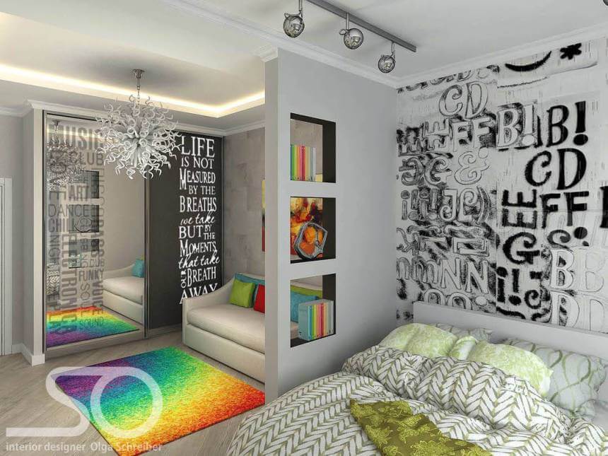 Идеальной заменой большому и громоздкому спальному месту будет раскладной диван, который обладает огромным преимуществом — многофункциональностью. Например, после приема гостей его можно разложить и использовать для сна. Также стоит отметить, что компактная горка подойдет гораздо лучше, чем громоздкий шкаф.