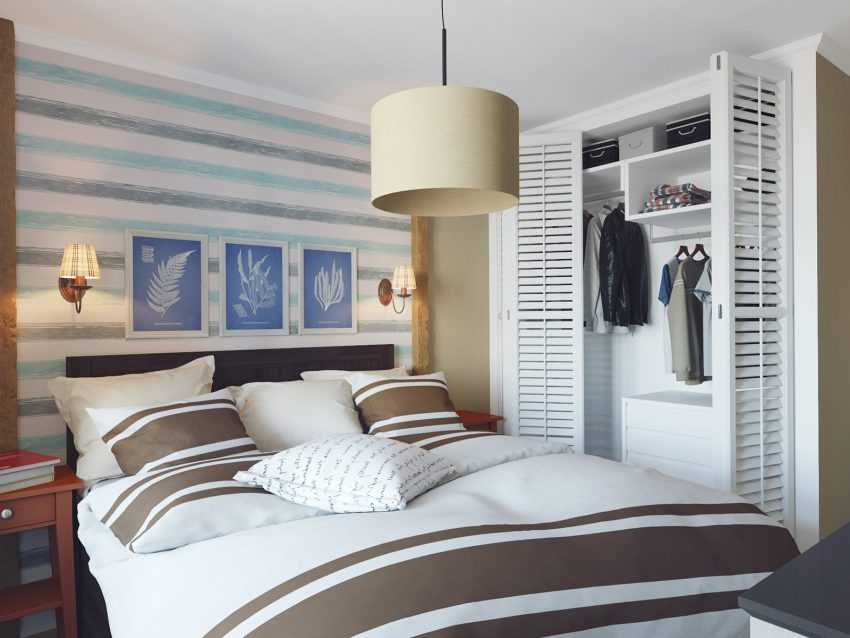 Необходимо визуально расширить пространство. Для этого целесообразно отделывать стены в более светлых тонах. Использование в декоре горизонтальной полоски также увеличит пространство, а вертикальная линия поможет лучше разграничить комнату.