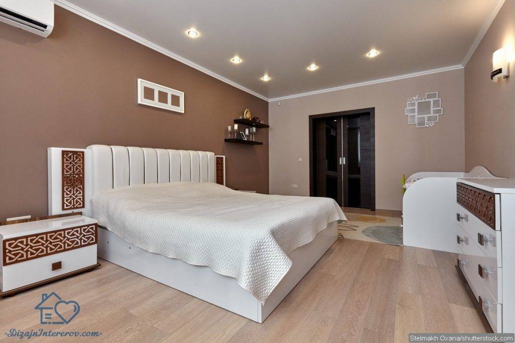 Между тем, потолок занимает шестую часть пространства комнаты и на него стоит обратить внимание. Традиционный белый цвет потолка — привлекательное решение (это дешево, относительно быстро и не требует подбора цвета под основную цветовую гамму комнаты), есть смысл попробовать и другие цвета для этой части спальни