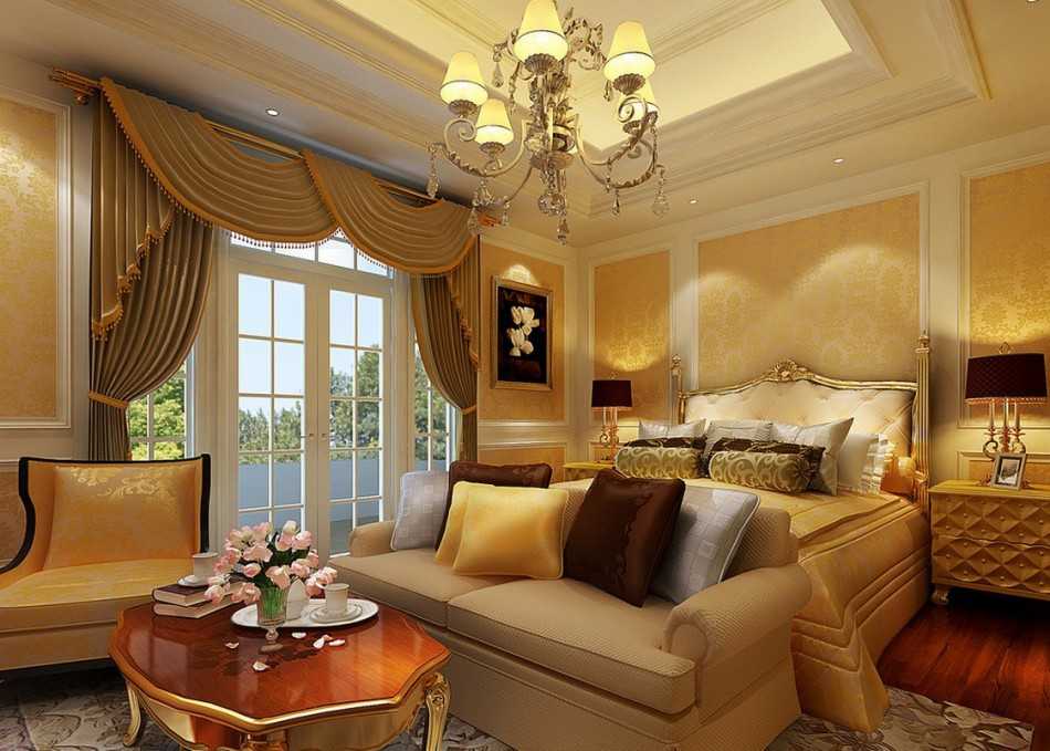 Классический интерьер спальни в светлых тонах сочетает роскошь барокко, ампира, викторианский стиль