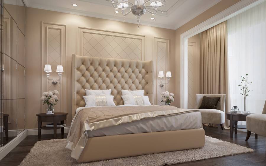 Интерьер спальни 15 кв. м в светлых тонах