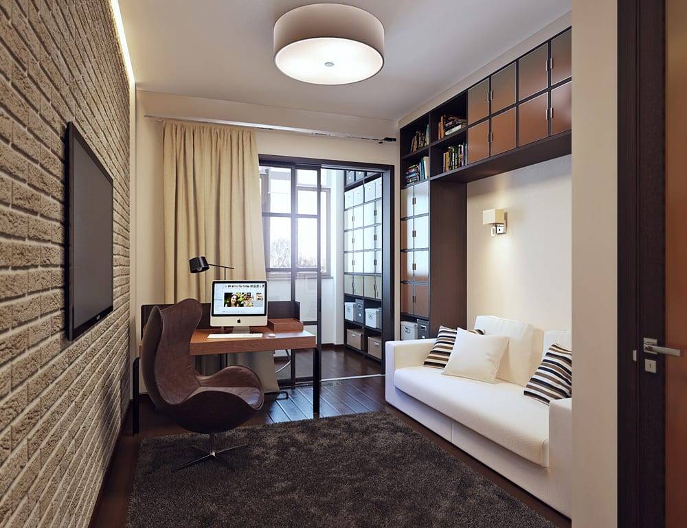 А вот дизайн гостиной комнаты с балконом, который выполняет функцию личного кабинета (см. фото):